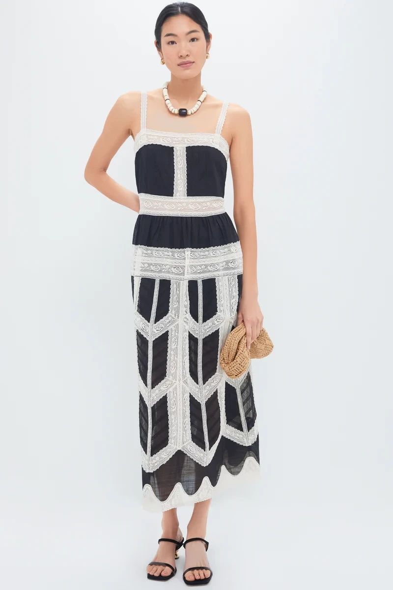 Black and Cream Rhiannon Lace Slip Dress