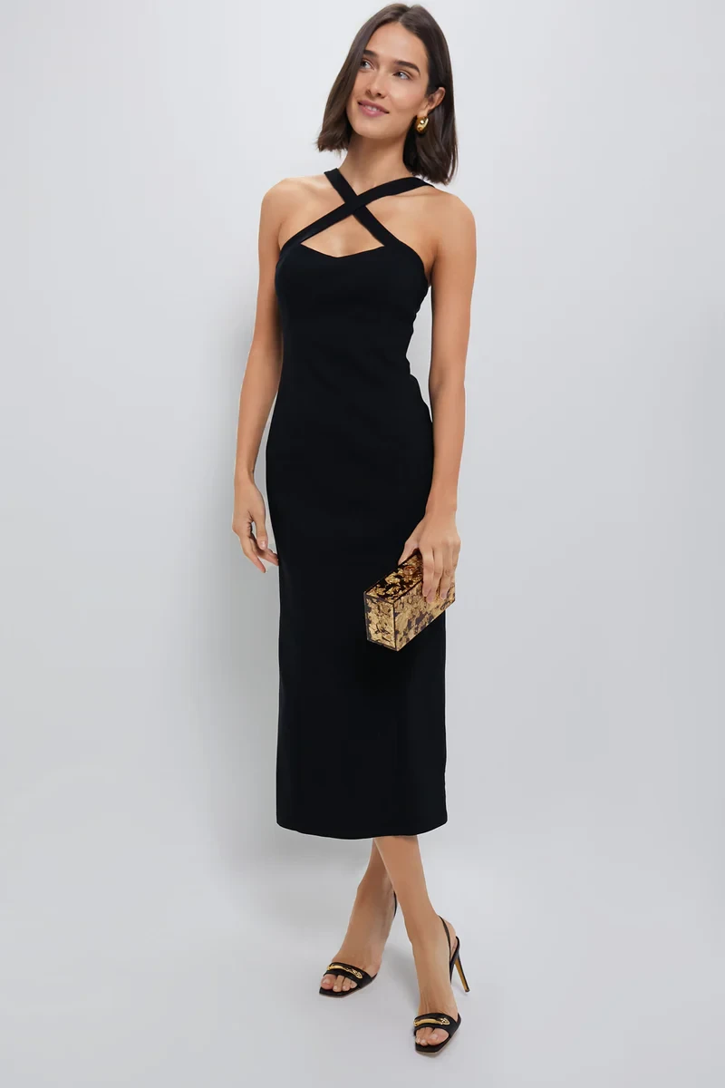 Care: Hand wash cold, hang to dryDetails & Care A flirty date night midi, the Alice Dress turns heads with its sleek silhouette and standout details. Crafted in a luxe crepe fabric, this form-fitting style features criss-cross straps, a front keyhole, and a flattering midi length—making it perfect for evenings out, cocktail parties, or any occasion that calls for a little drama. Pair with strappy heels and a clutch for an effortlessly chic look. Favorite Details: Criss-cross straps with front keyhole detail Hidden back zip closure for a smooth finish Figure-hugging silhouette Fully lined for a polished fit Material: Outer: 80% Cotton, 15% Nylon, 5% Spandex Lining: 95% Polyester, 5% Spandex Care: Hand wash cold, hang to dry