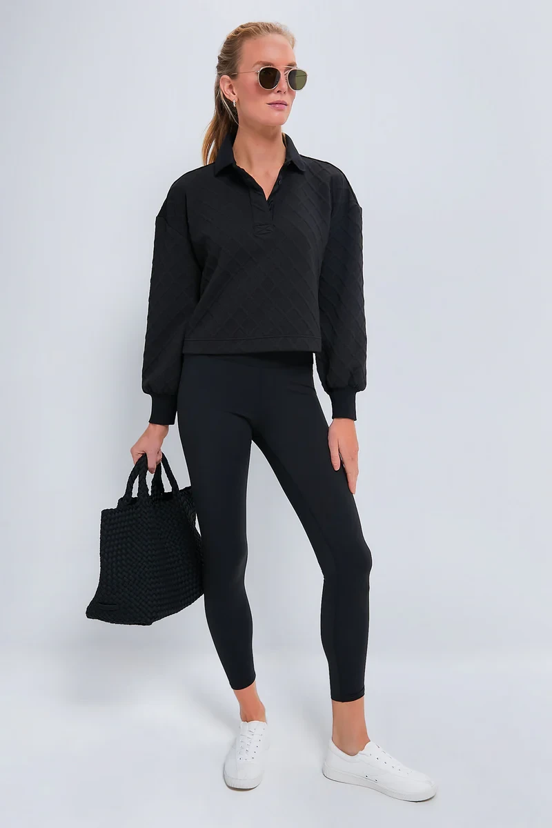 Black Cropped Fallon Rugby Shirt
