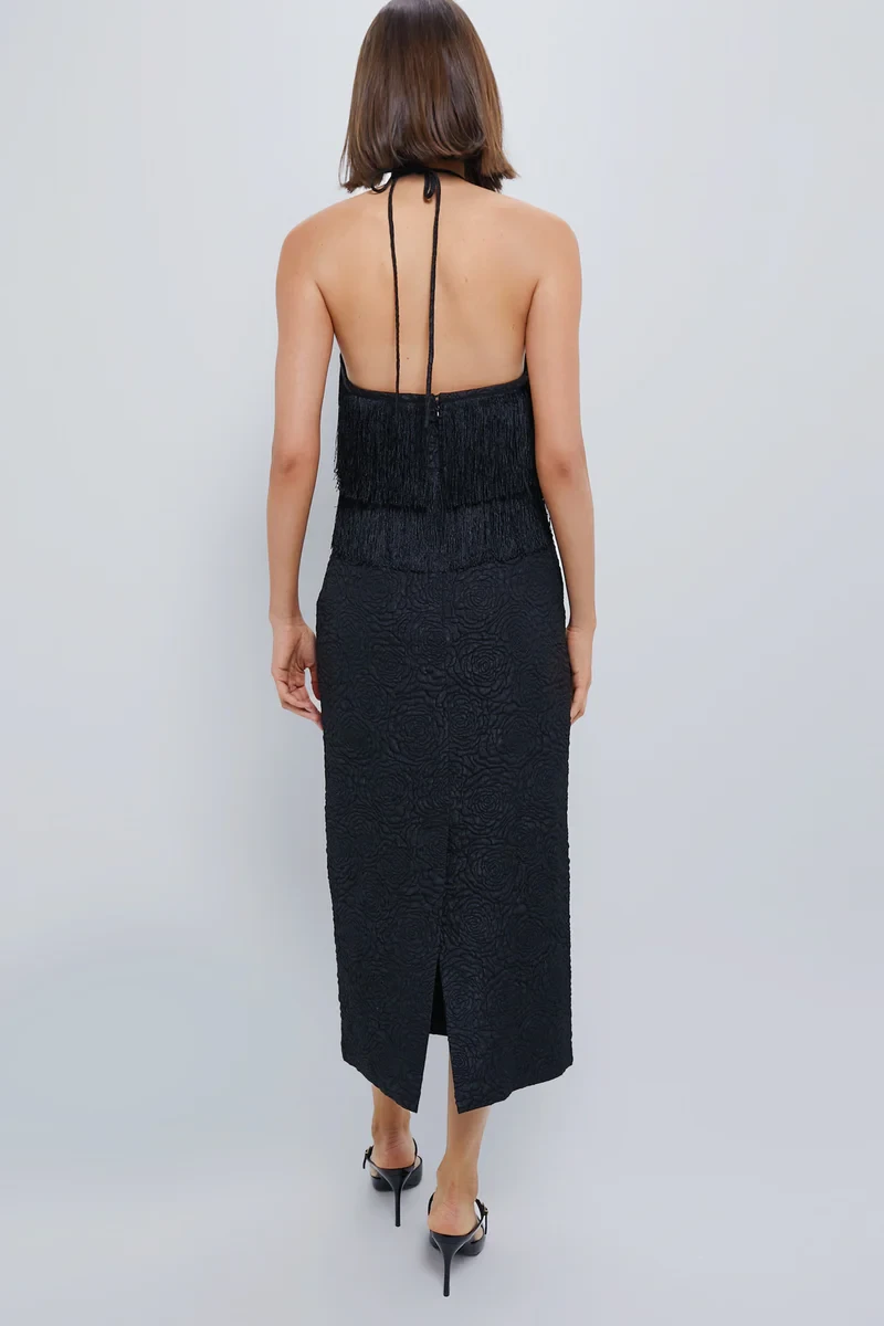 Black Fringe Halter Neck Natalia Midi Dress