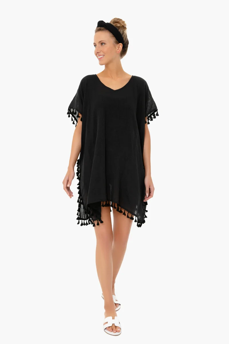 Easy, breezy and always ready for an adventure in the sun, the Katie Caftan is our go-to when picking a lightweight cover-up. Slightly sheer and detailed with pom-pom tassels, this V-neck dress is the perfect amount of chic and fun for an easy beach look. Just add your go-to suit and hat for a breezy, effortless feel– and don’t forget the sunscreen!