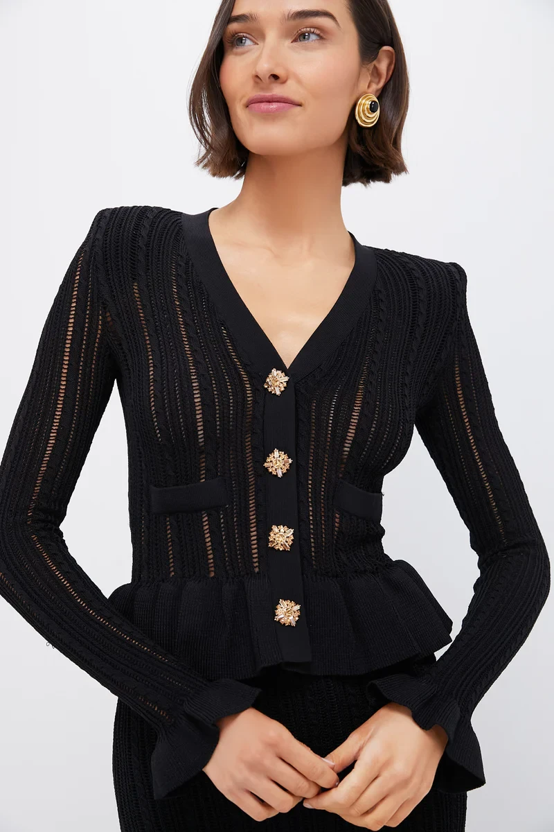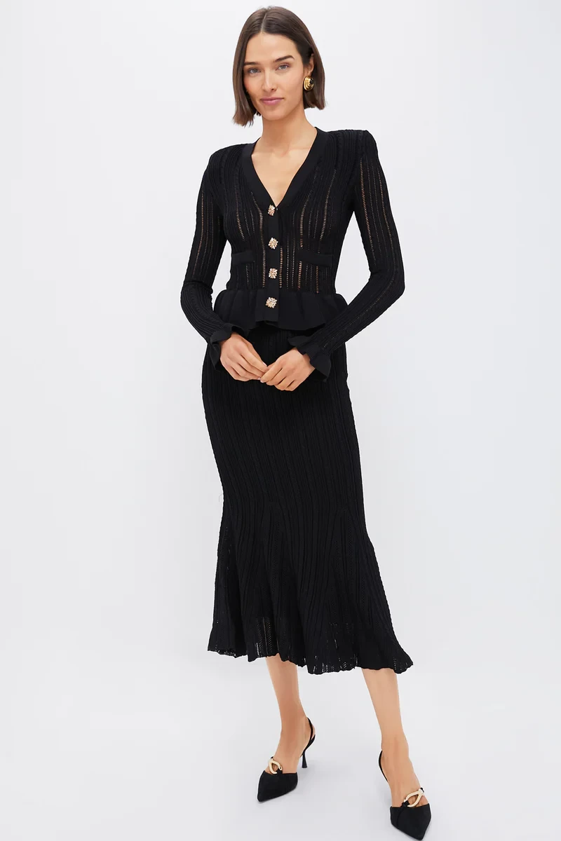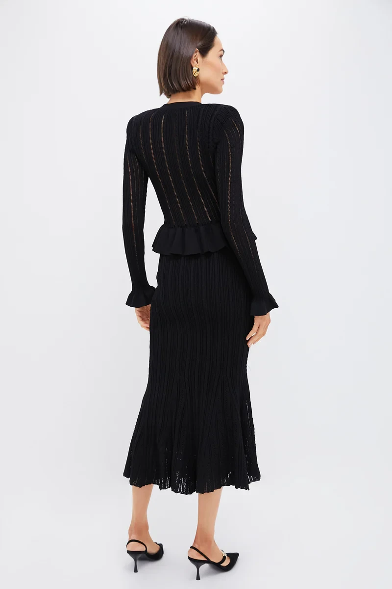 Black Knit Peplum Midi Dress