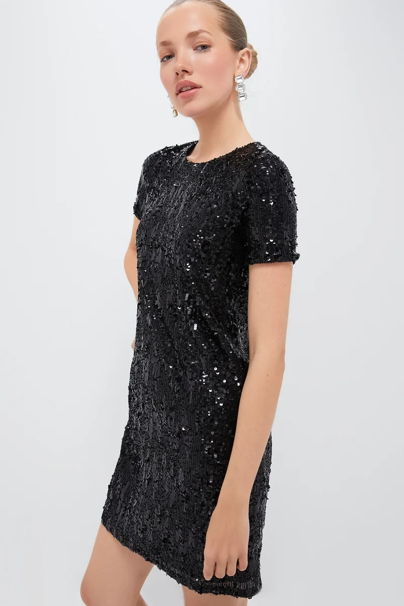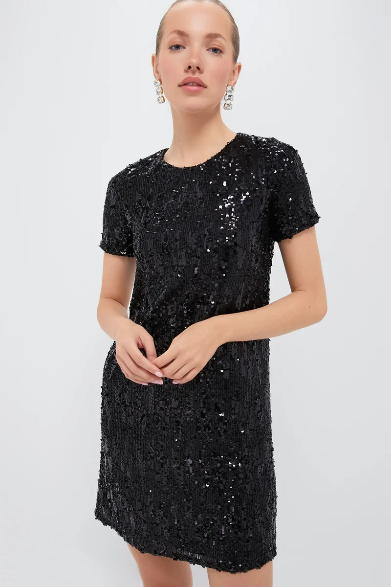 Black Sequin Modern Shift Dress