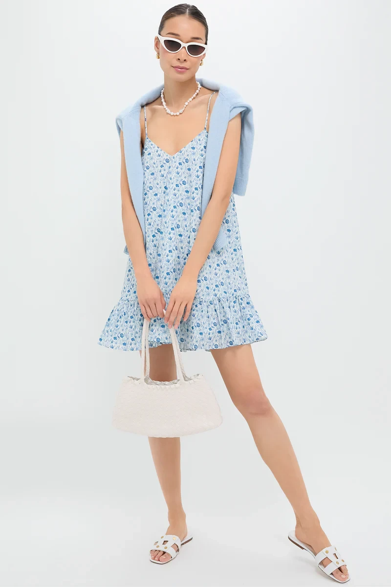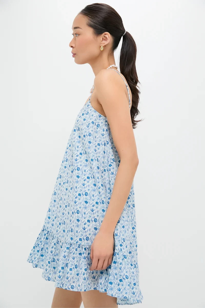 Blue and White Ditsy Floral Bayberry Mini Dress