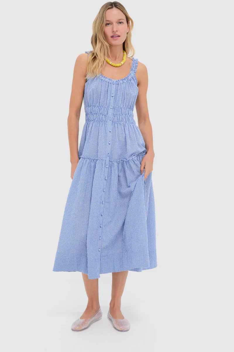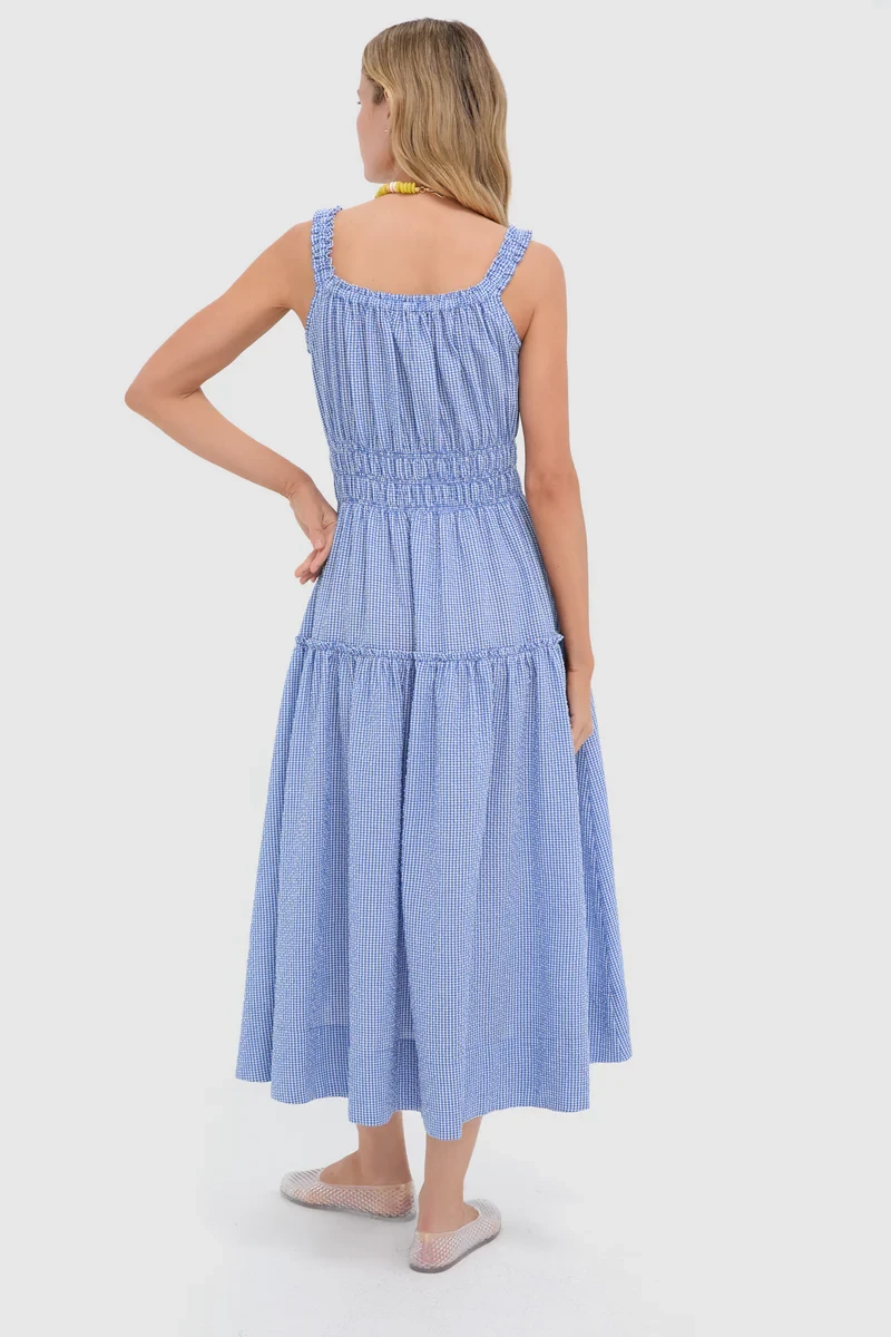 Blue and White Gingham Seersucker Landis Maxi Dress