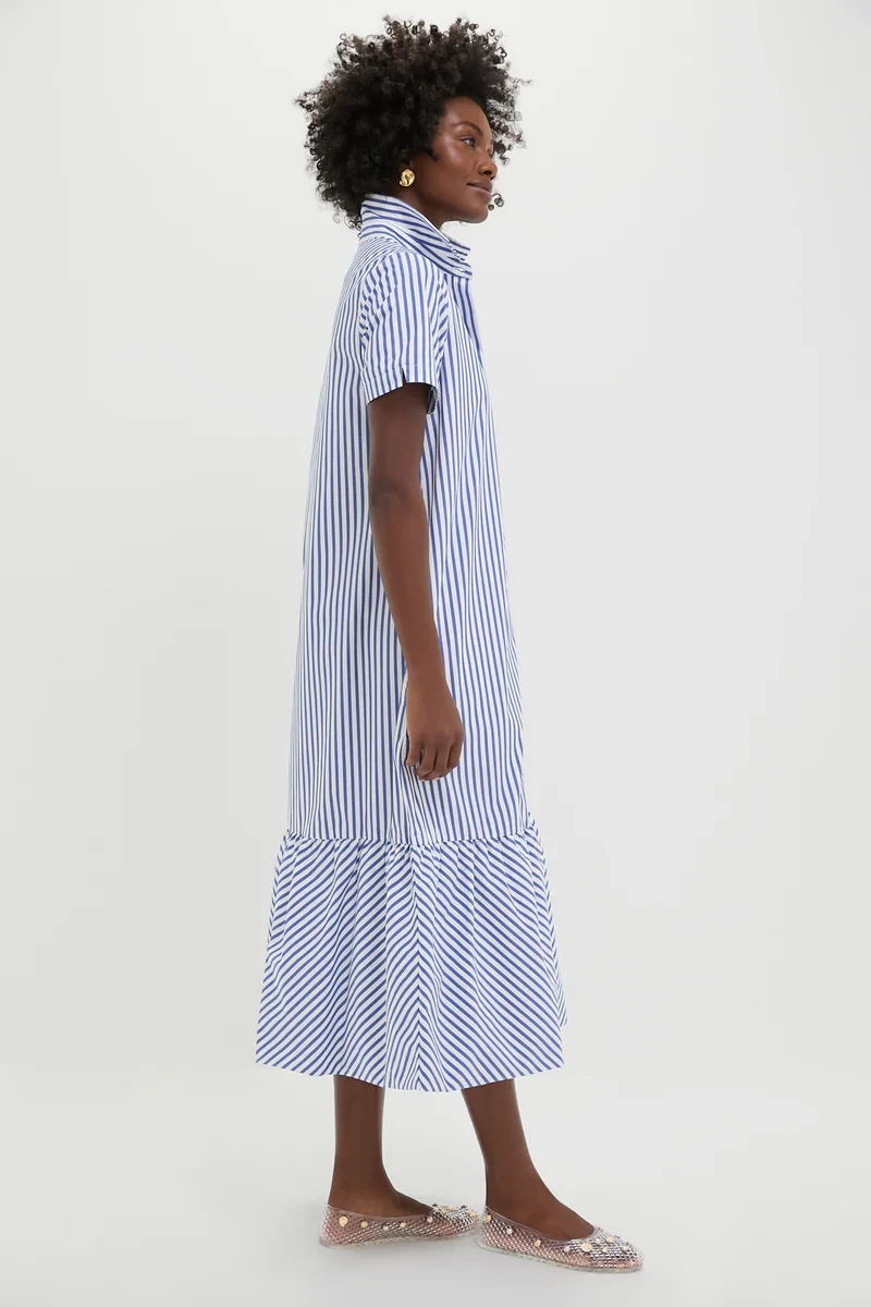 Blue and White Stripe Martine Bubble Maxi Dress