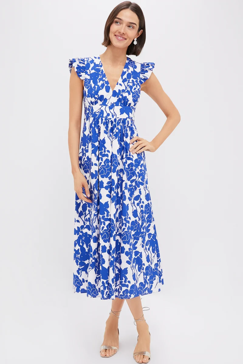 Feminine, flattering, and perfect for spring occasions, the Ruffle Sleeve Robinson Dress features a timeless fit-and-flare silhouette with a romantic blue floral print. A V-neckline, fluttery winged sleeves, and a self-tie waist create a polished look ideal for showers, garden parties, and everything in between. Just add heels and floral accessories for an effortlessly elegant ensemble.