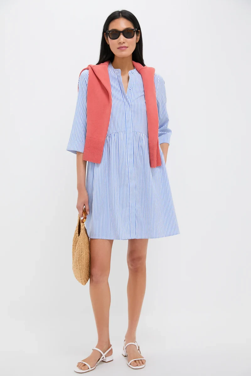 Our best-selling Blue Stripe Royal Shirt Dress is the closet staple everyone needs. Crafted from silky smooth fabric with a relaxed boxy silhouette, this mini dress is effortlessly versatile for any occasion. Whether dressed up with heels or down with sneakers, paired with a cozy sweater or a wide-brimmed sunhat, this timeless piece adapts beautifully to your style and season.