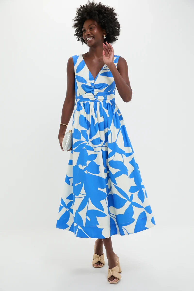 Blue & White Floral Carson Maxi Dress