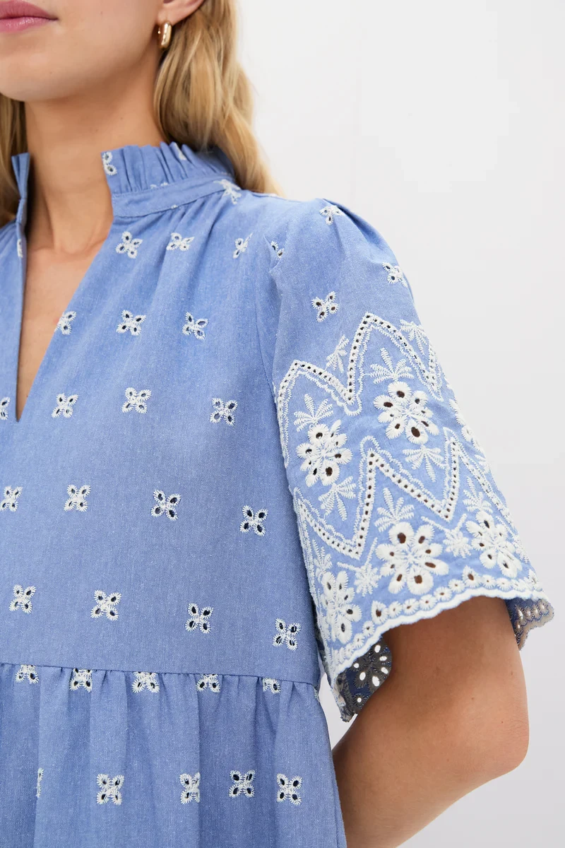 Say hello to the dress you’ll want to wear on repeat. The Chambray Embroidered Crawford Dress combines effortless style with breezy comfort. Featuring delicate white embroidery, a swingy tiered silhouette, and flutter sleeves, it’s perfect for warm-weather adventures—whether you’re grabbing coffee, heading to brunch, or packing for a getaway.