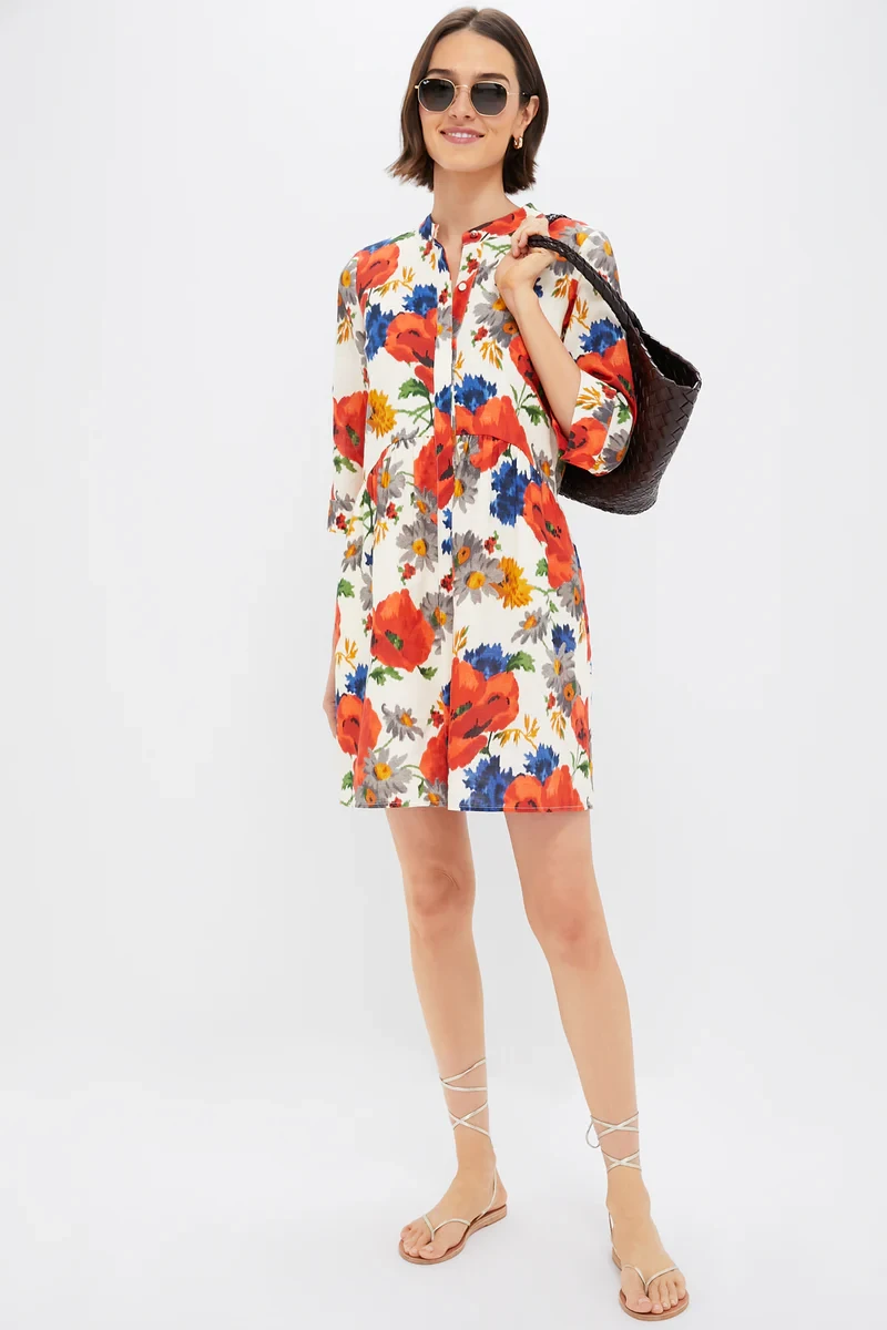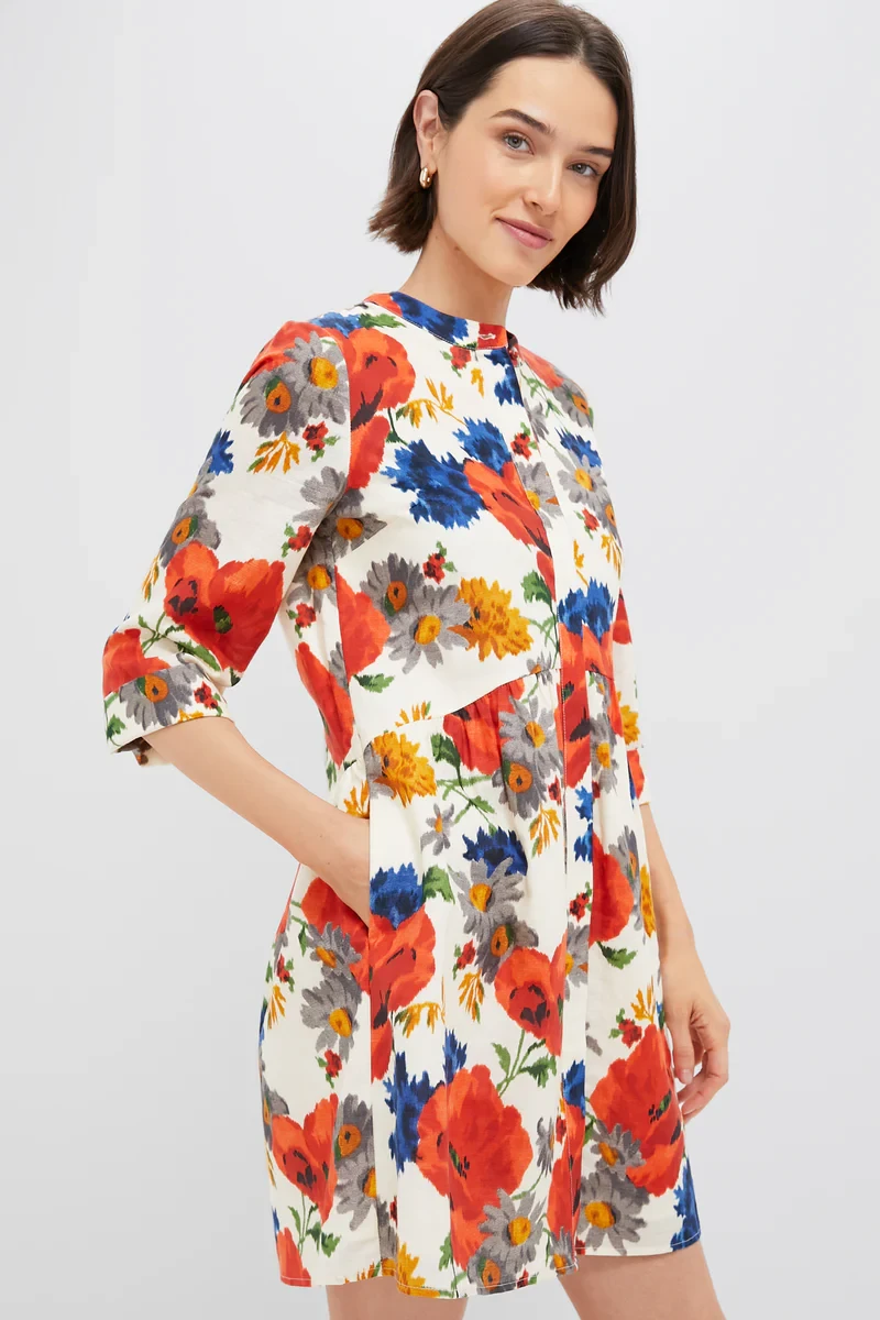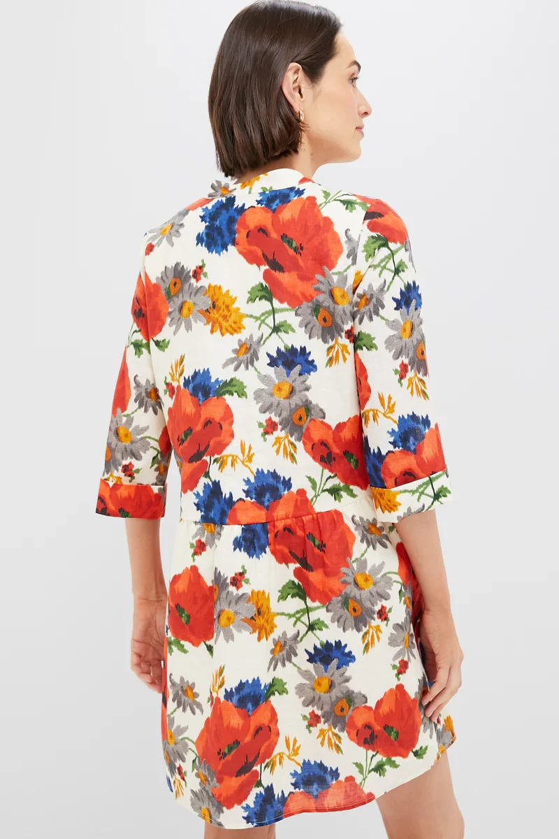 Crimson Poppy Cotton Linen Royal Shirt Dress