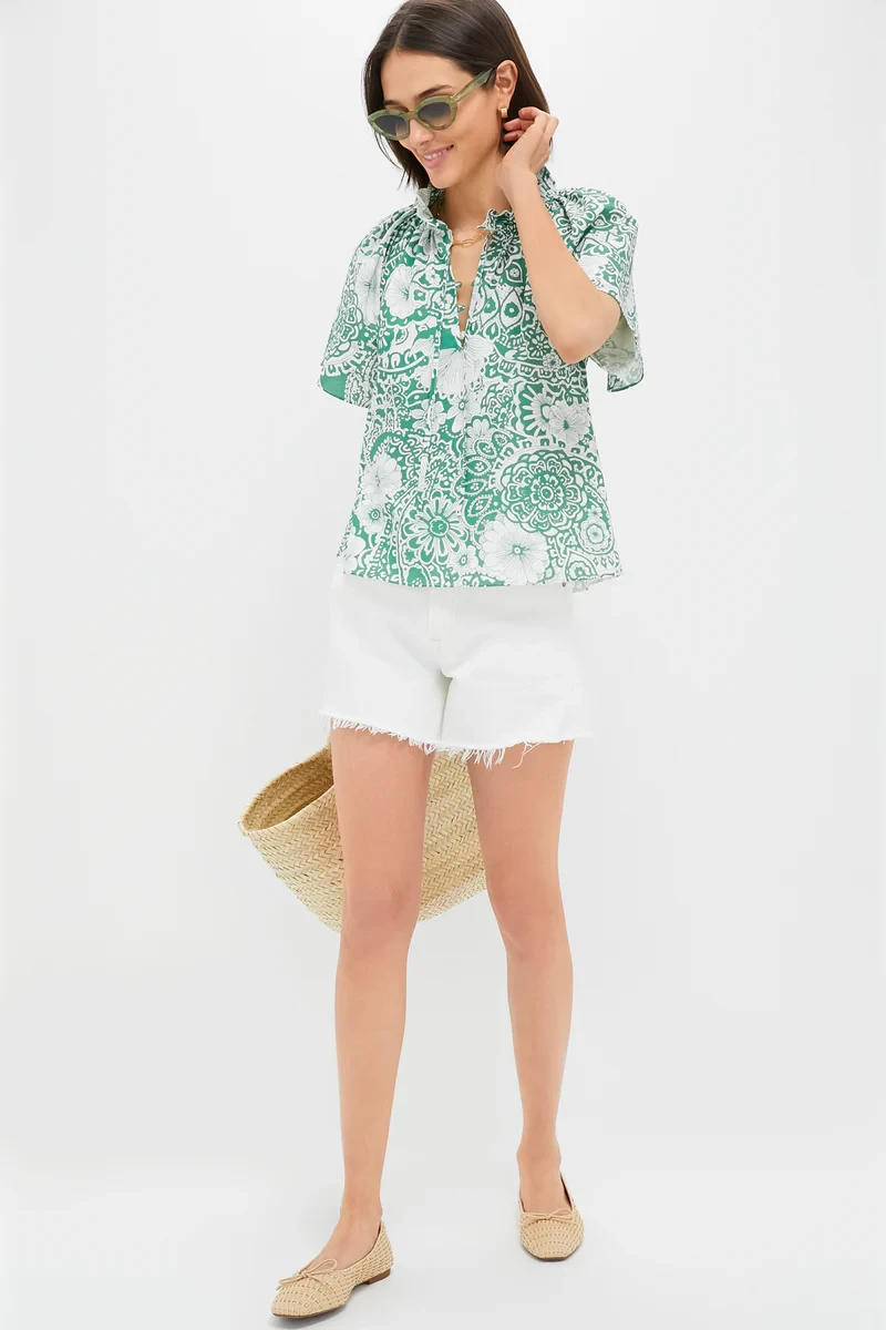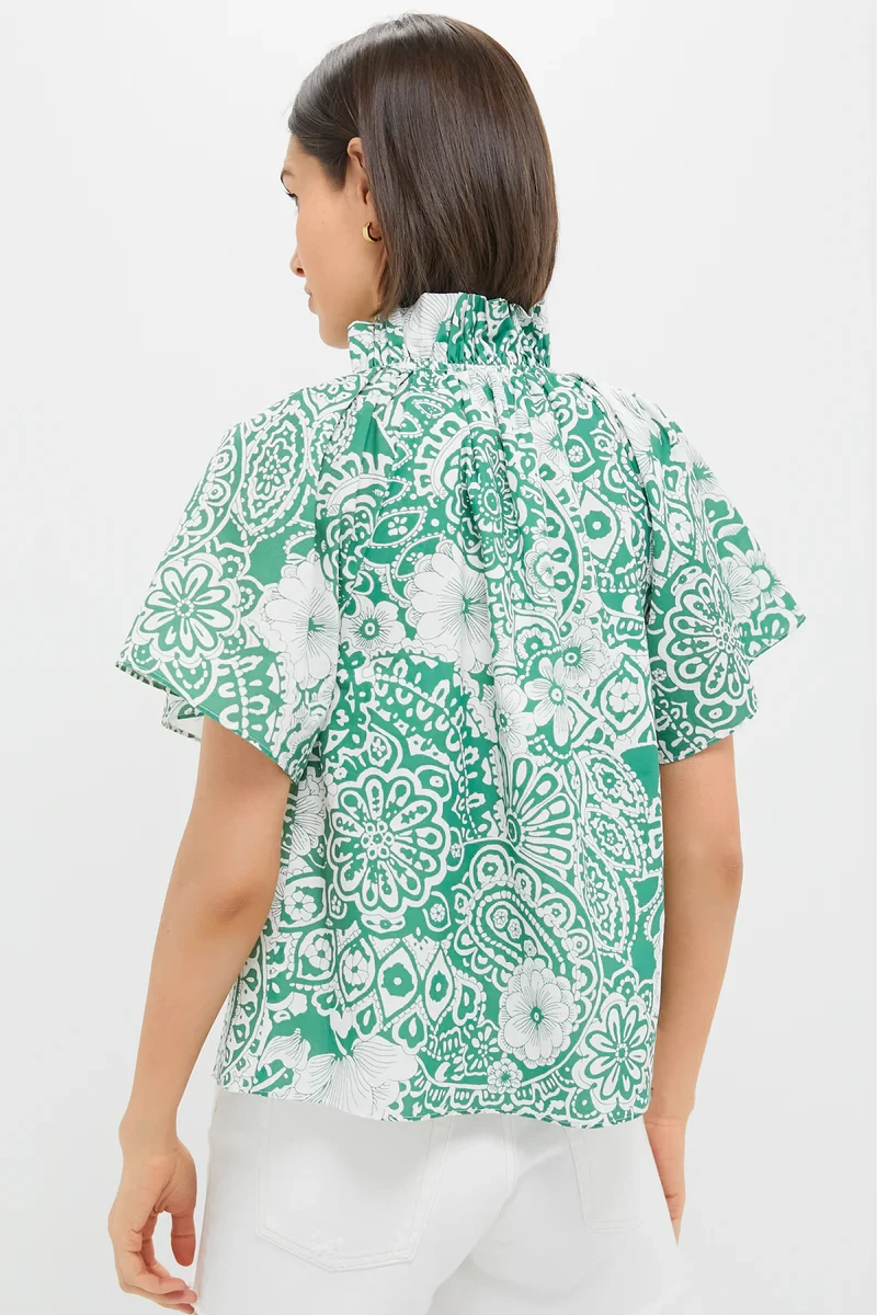 Green & White Floral Thea Blouse