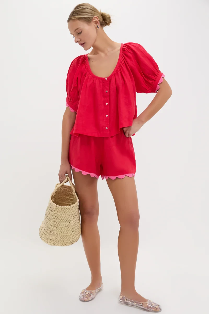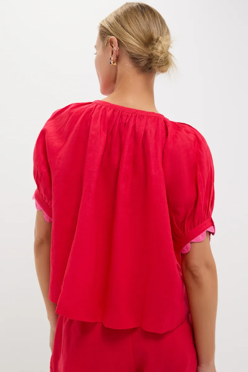 Hibiscus Red Linen Tully Top