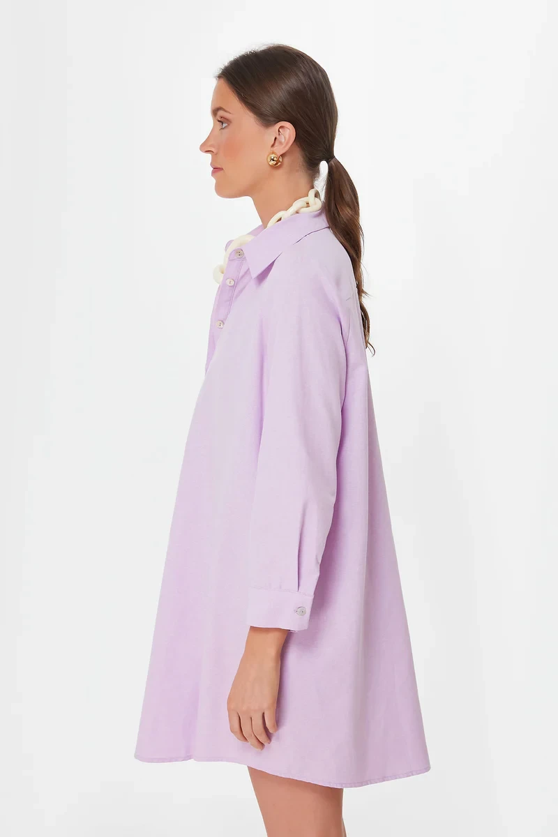 Meet the Oxford Harris Shirt Dress—where classic workwear meets feminine ease. With crisp, fresh details like a spread collar, button cuffs, and a high-to-low hem, this relaxed-fit mini is your perfect seasonal transition piece. Effortlessly cool and versatile, it’s ready to pair with chunky knits and sandals for a laid-back vacation vibe or dressed up for casual city strolls.