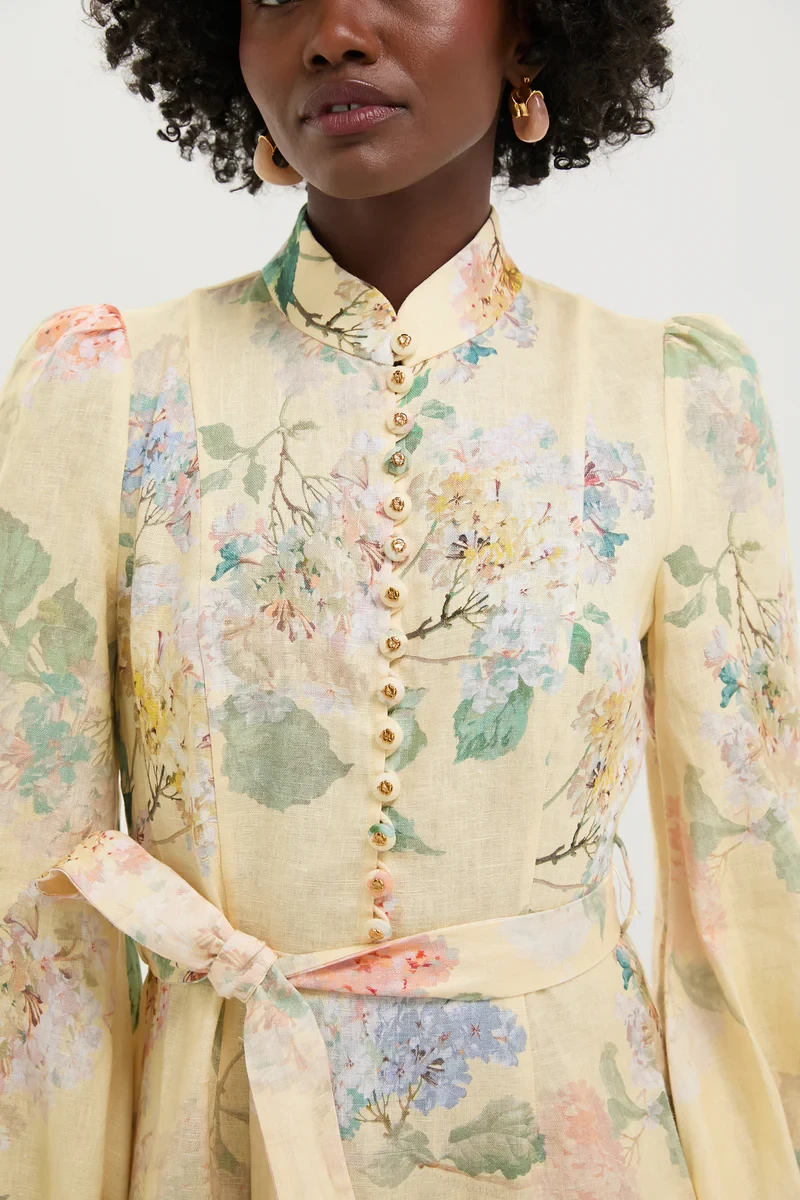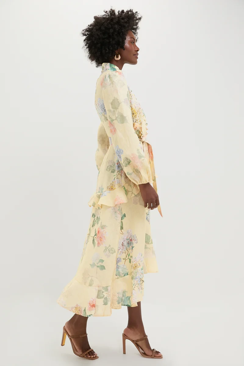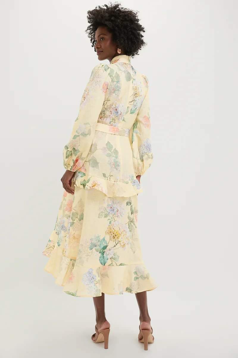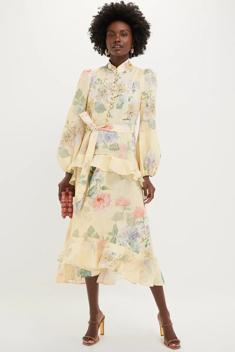 Lemon Hydrangea Illuminate Peplum Midi Dress