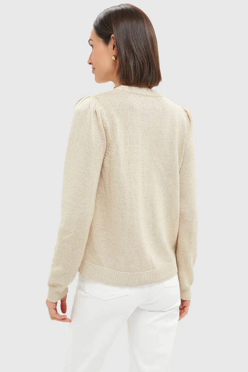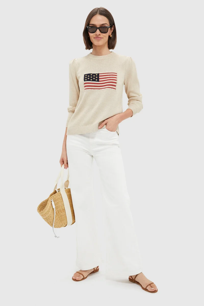 Metallic Cropped Cotton Puff Sleeve Americana
