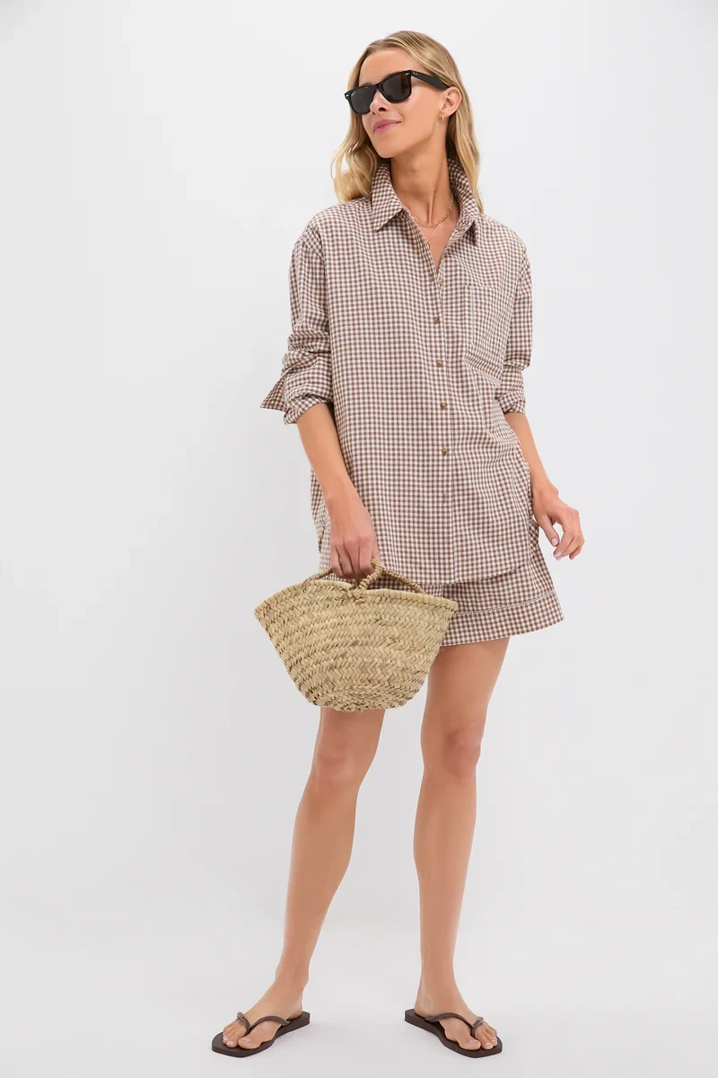 Mocha Cotton Gingham Hunter Button Down