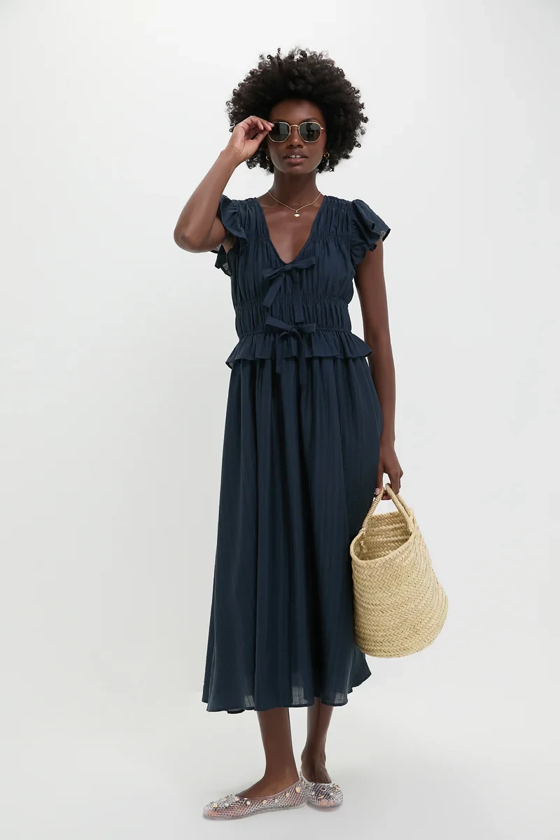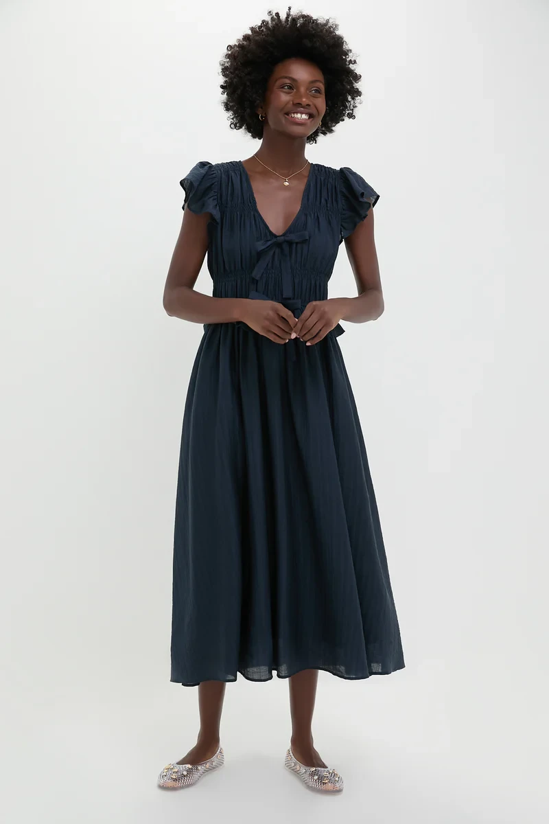 Be the first to review “Navy Flutter Sleeve Tie Front Midi Dress” Cancel reply