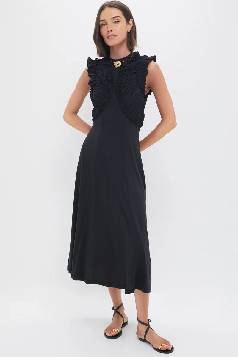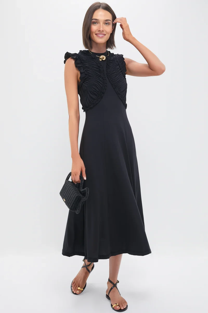 Noir Shiva Sleeveless Ruffled Midi Dress