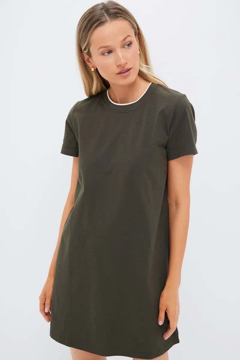 Meet the Aimee Mini Dress—your effortless go-to for elevated everyday style. Crafted from soft, lightweight jersey fabric with a touch of stretch, this easy mini features a straight silhouette, short sleeves, and a playful contrast ribbed crewneck for that sporty-chic finish. Whether you’re running errands or heading to brunch, this dress pairs perfectly with sneakers, sandals, or anything in between.