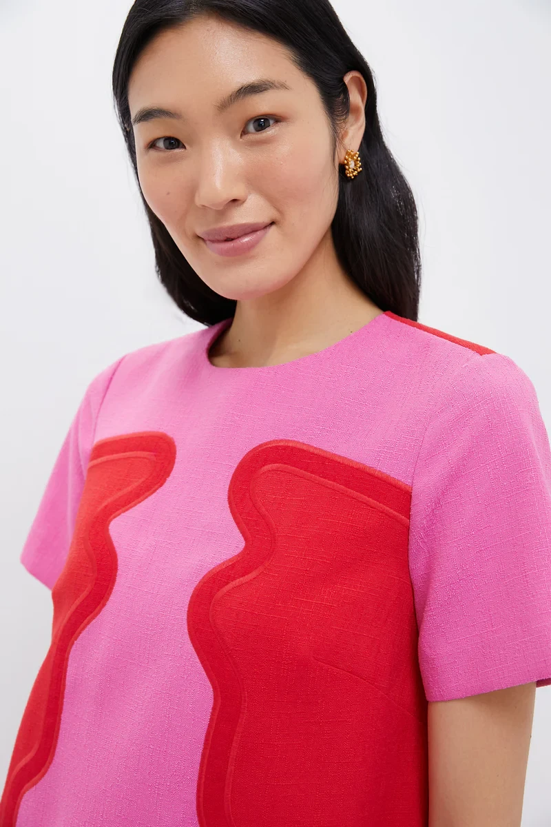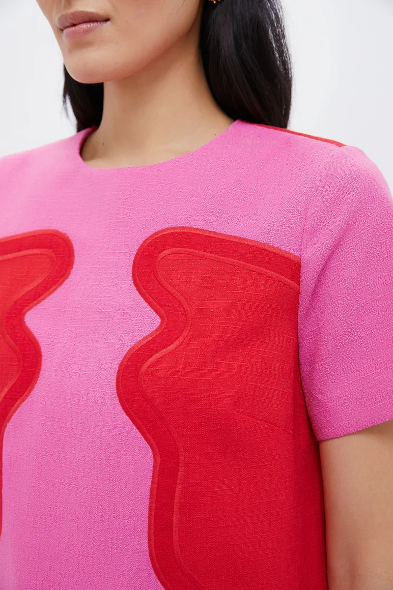 Poppy and Hot Pink Placed Embroidery James Dress