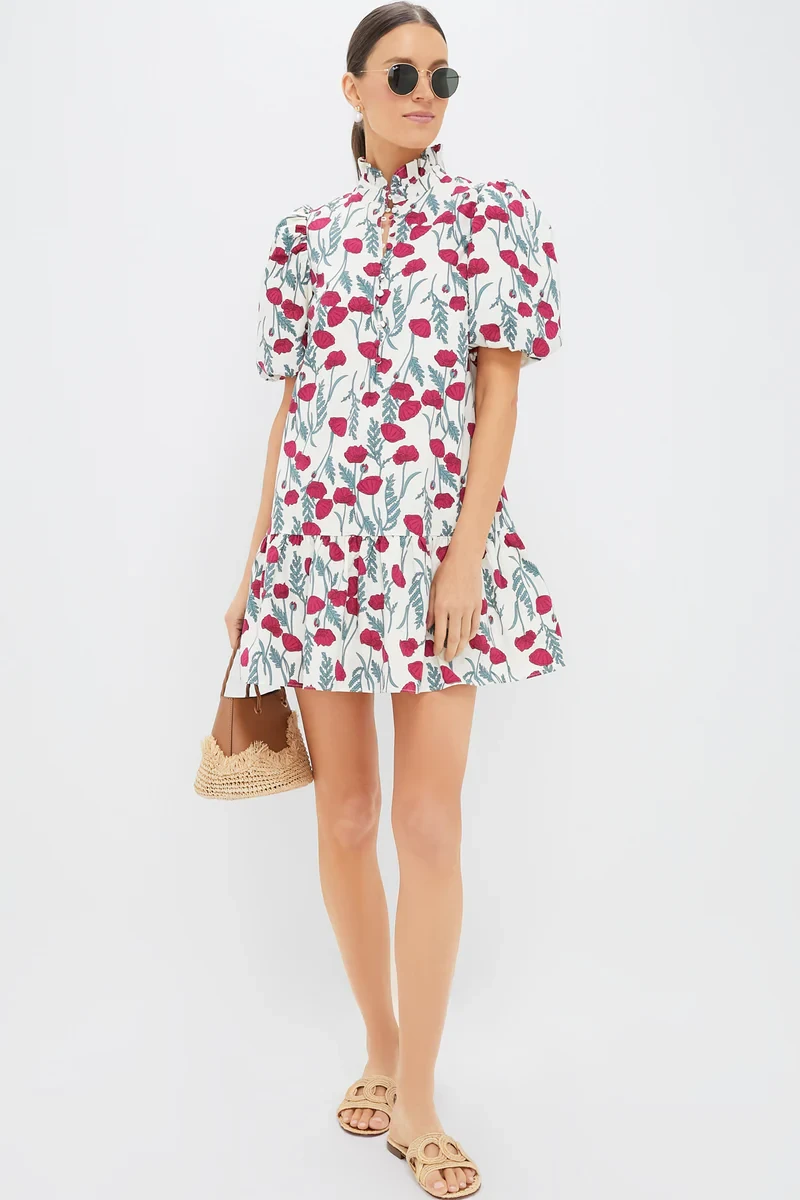 The Red Amaryllis Floral Mimsy Mini Dress captures the essence of spring with its playful yet refined design. Perfect for resort wear, brunches, showers, and beyond, this dress features a feminine ruffle stand collar, short puff sleeves with structured cuffs, and a flouncy skirt that moves beautifully. Lightweight and lined for comfort, it’s your go-to for all-day style. Pair it with sandals, a handbag, and sunnies for effortless charm.