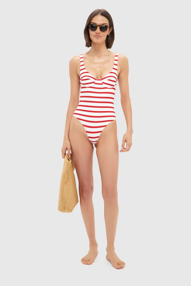 True Red and Off-White Sailor Stripe Underwire One Piece