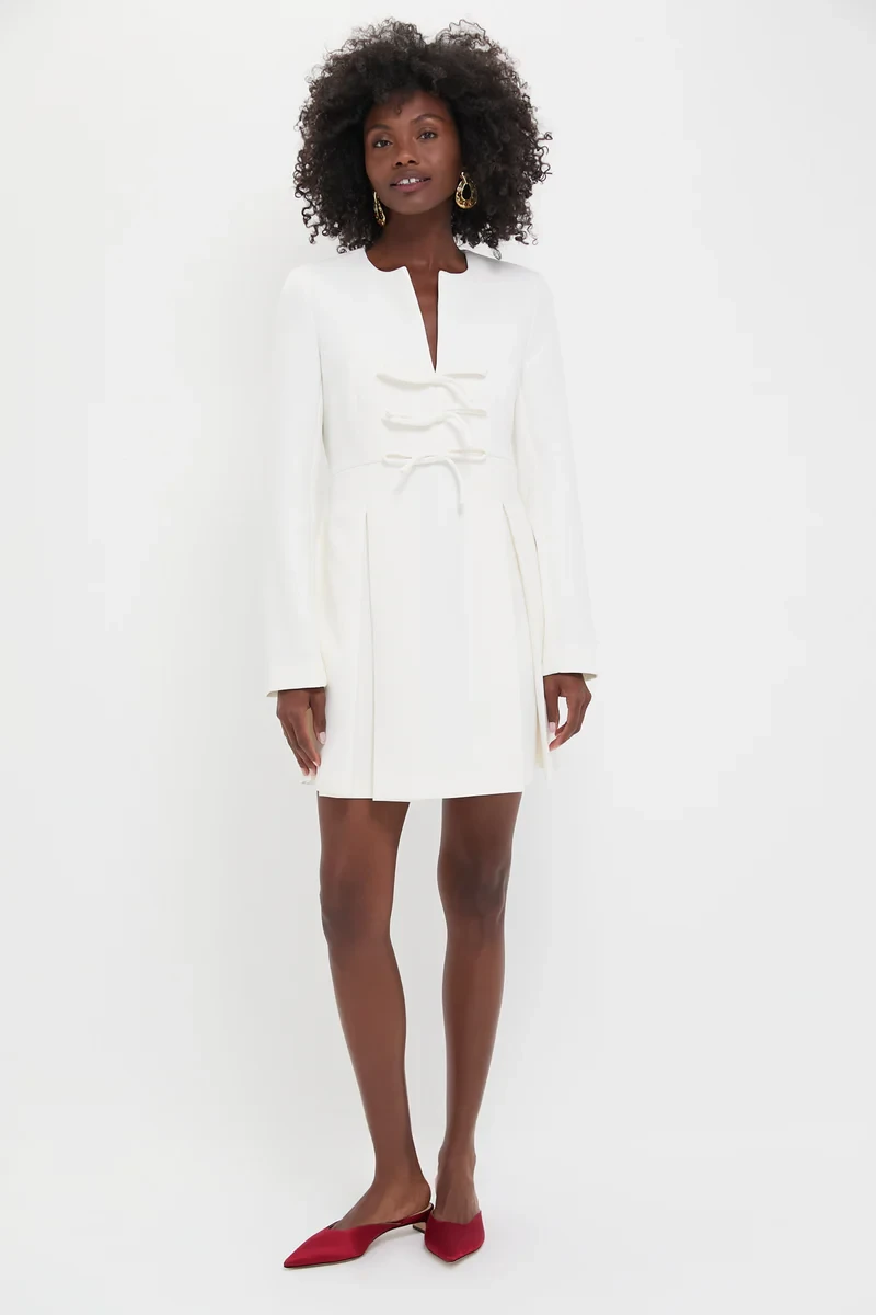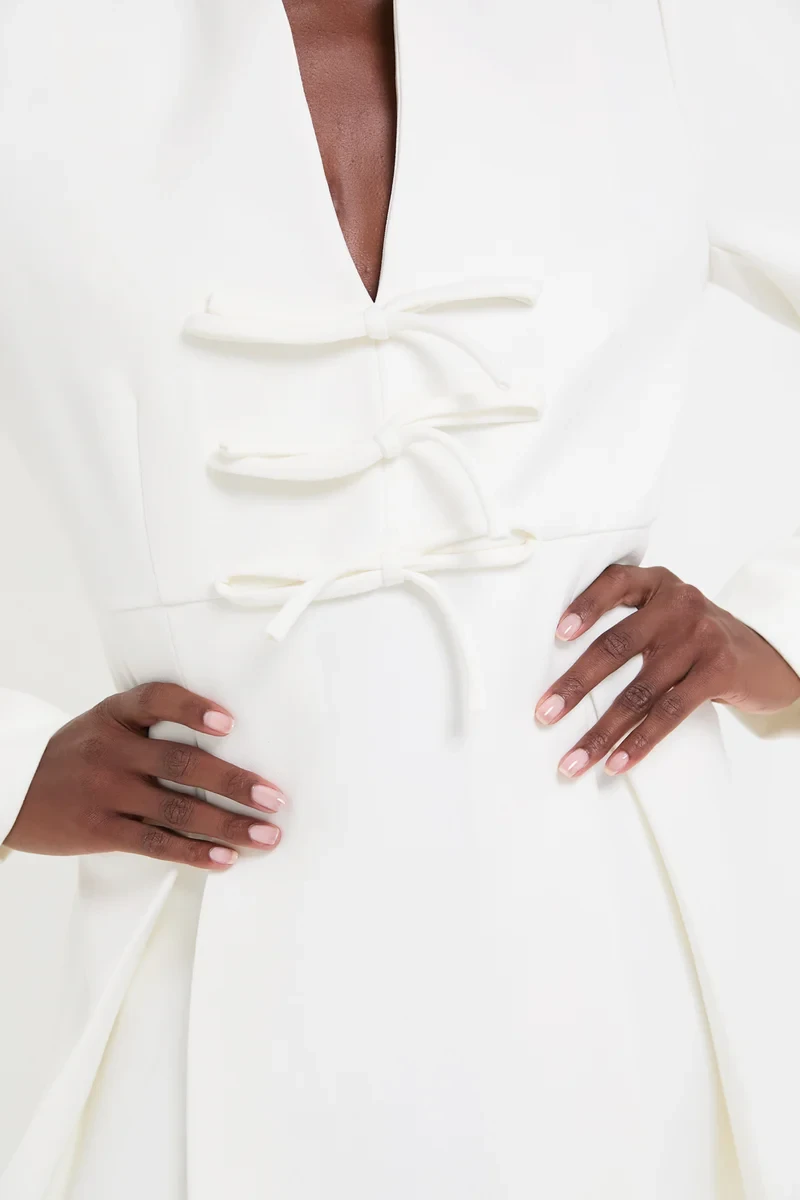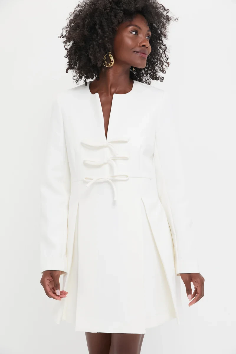 White Crepe Blair Bow Coat Dress