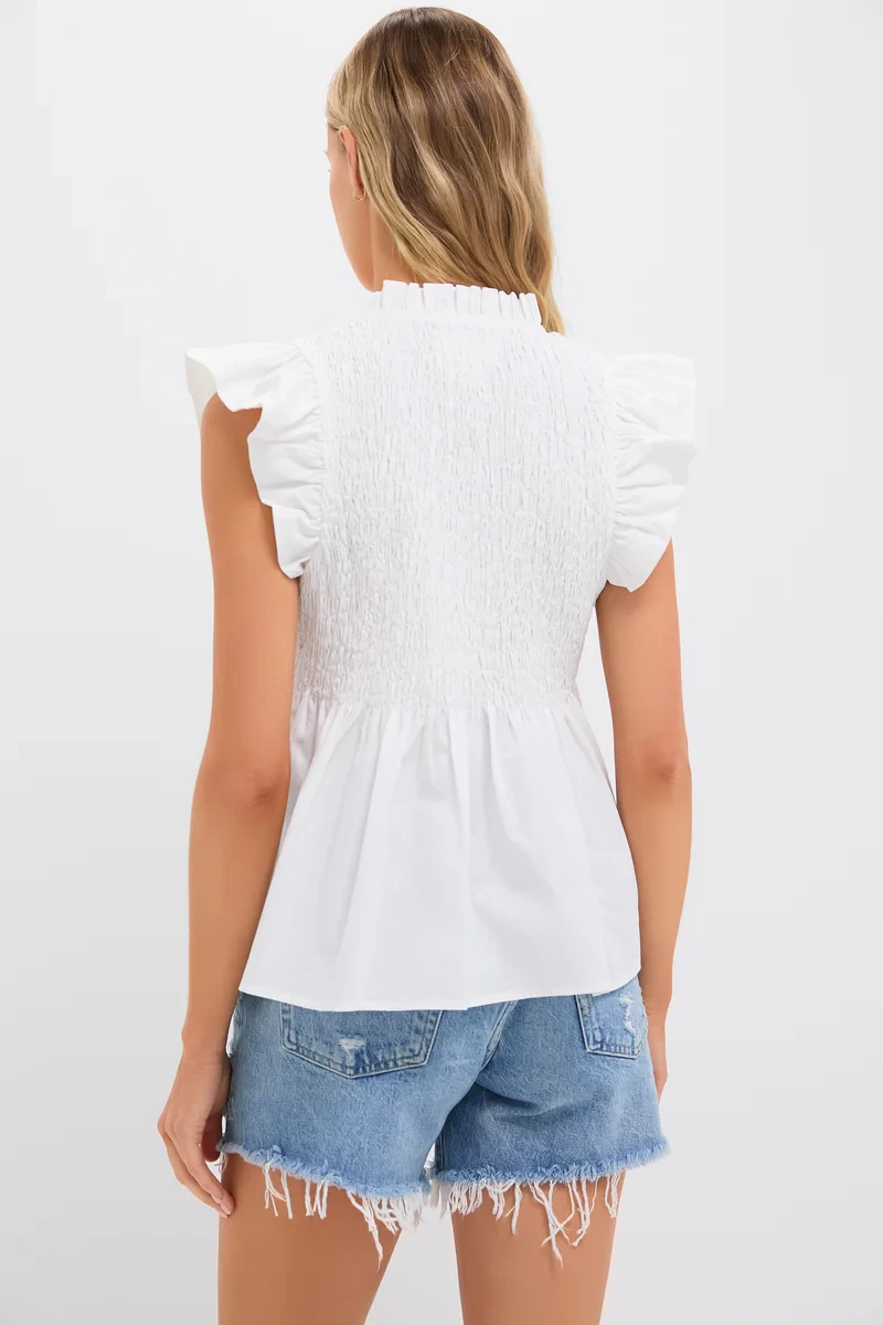 White Flutter Sleeve Smocked Irma Top