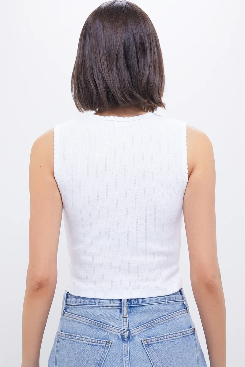 White Pointelle Sleeveless Crew